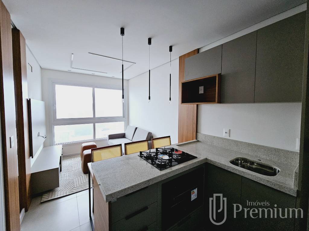 Apartamento com um dormitório, sala de estar/jantar, cozinha americana, lavanderia, churrasqueira, rebaixo em gesso, ...
