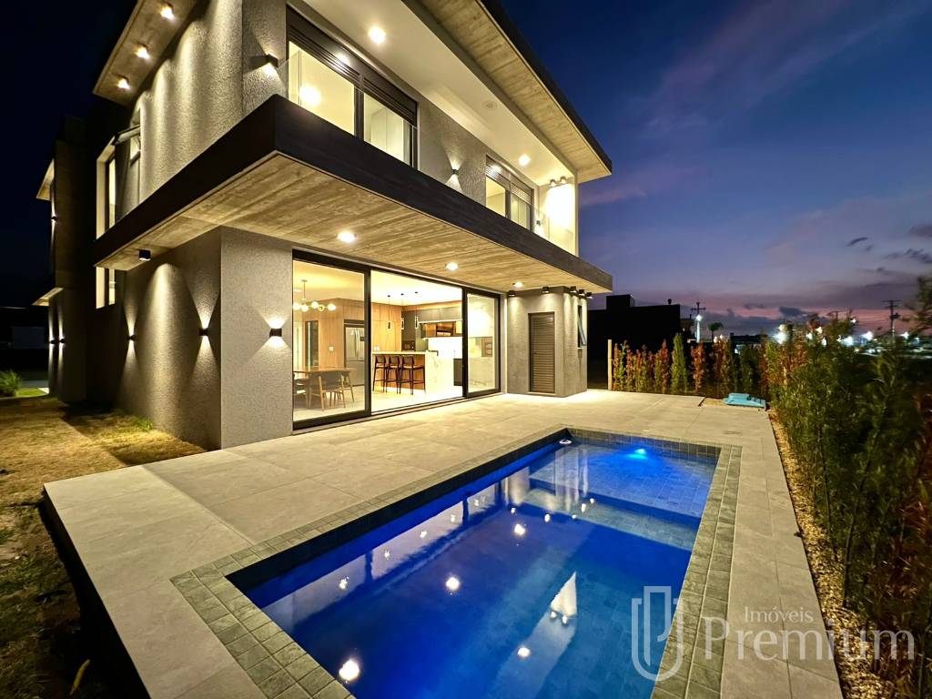 Imponente Sobrado à venda em condomínio fechado totalmente novo em Xangri-lá com 231m2 construídos, imóvel composto por 04 suítes individuais sendo 01 térrea, lavabo social, finamente mobiliado pronto para morar, living amplo com pé direito duplo e ambientes integrados, cozinha americana com bancada e área gourmet, churrasqueira a carvão, lavanderia separada, piscina nos fundos, ar condicionado instalado, piso porcelanato, paisagismo moderno e completo, excelente localização e abrigo para veículo. Condomínio com infraestrutura completa de lazer, segurança o ano inteiro e perfeito para você aproveitar os momentos na praia com sua família. Agende uma visita agora mesmo!
