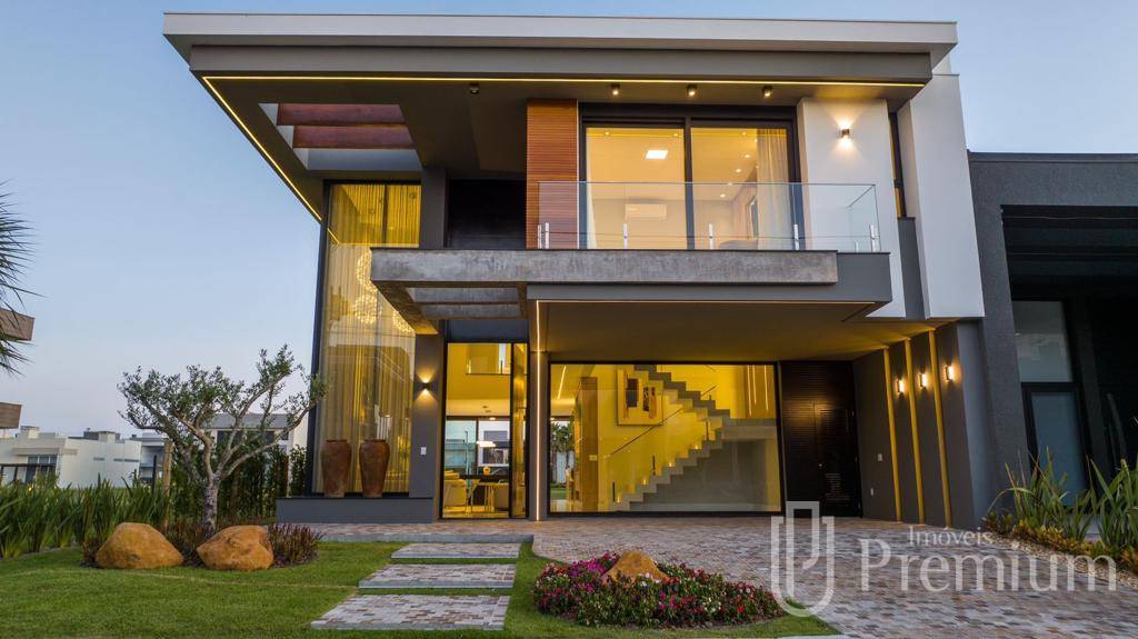 Imponente Sobrado com 350m em Condomínio Fechado em Capão da Canoa, imóvel composto por 05 dormitórios suítes, sendo 01 master com closet e banheira de hidromassagem, lavabo social, finamente mobiliado e decorado pronto para habitar, todos os cômodos equipados, amplo living em 03 ambientes com pé direito duplo, estar com lareira, mesa de bilhar, jantar para 10 pessoas, cozinha americana com área gourmet integrada à area externa, piscina de concreto com borda infinita para o lago e aquecimento solar, todos os ambientes climatizados, piso porcelanato e abrigo coberto para 02 veículos. Condomínio exclusivo com acesso à Lagoa dos Quadros, infraestrutura de lazer completa e segurança o ano inteiro para a sua família. Solicite material com vídeos agora mesmo!